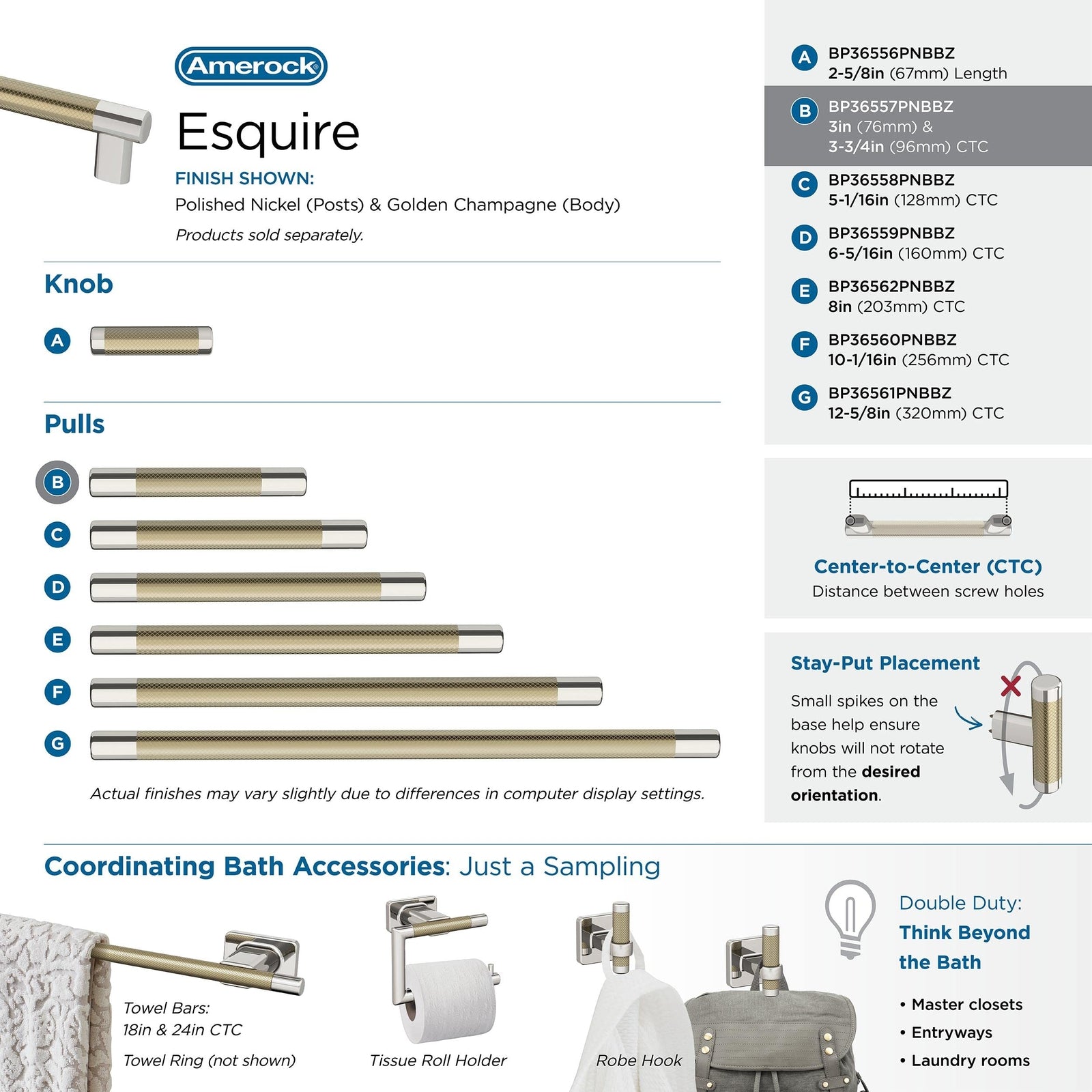 Amerock BP36557PNBBZ Cabinet Pull Polished Nickel/Golden Champagne 3-3/4" C2C