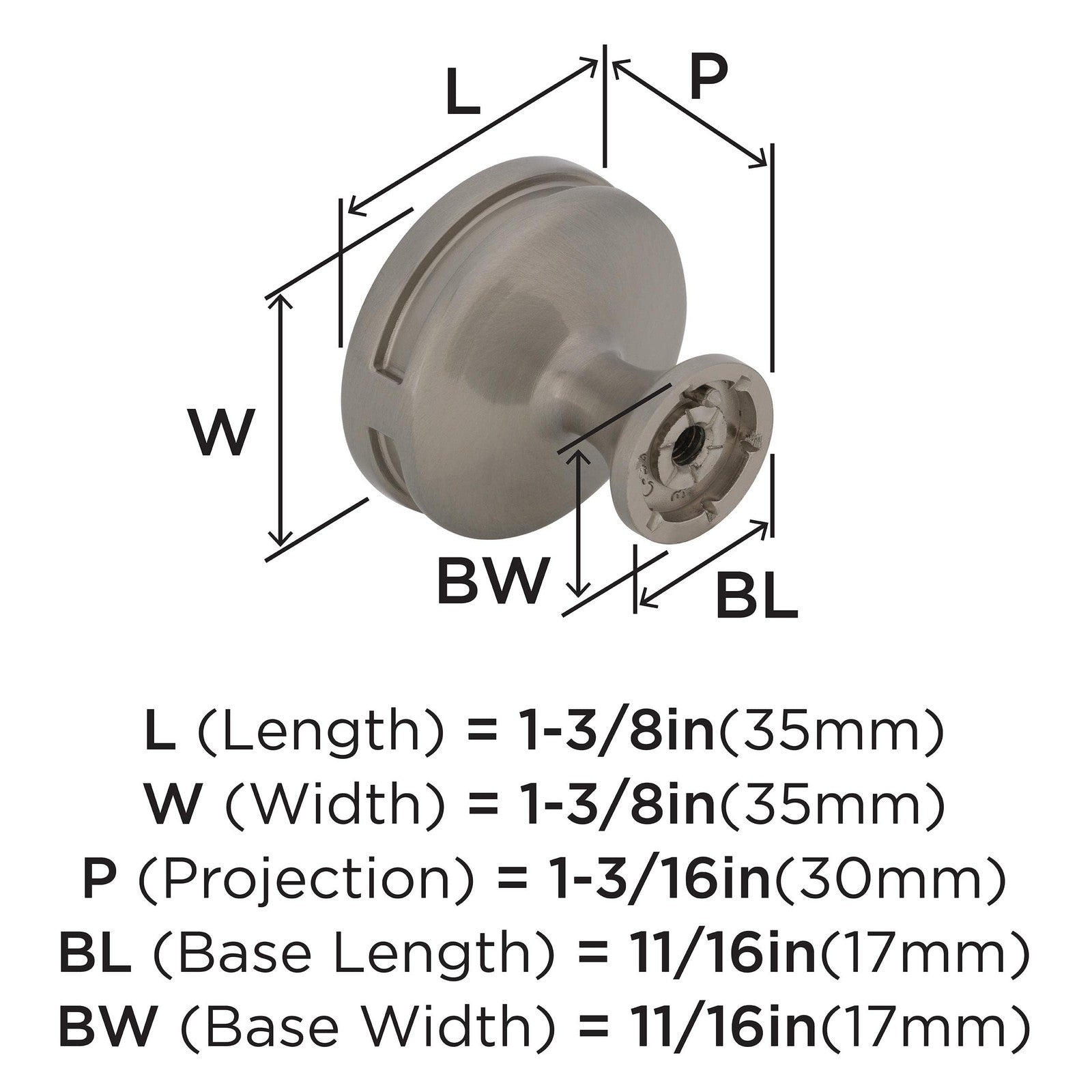 Amerock BP36603G10 Oberon Cabinet Knob Satin Nickel 1-3/8" Diameter