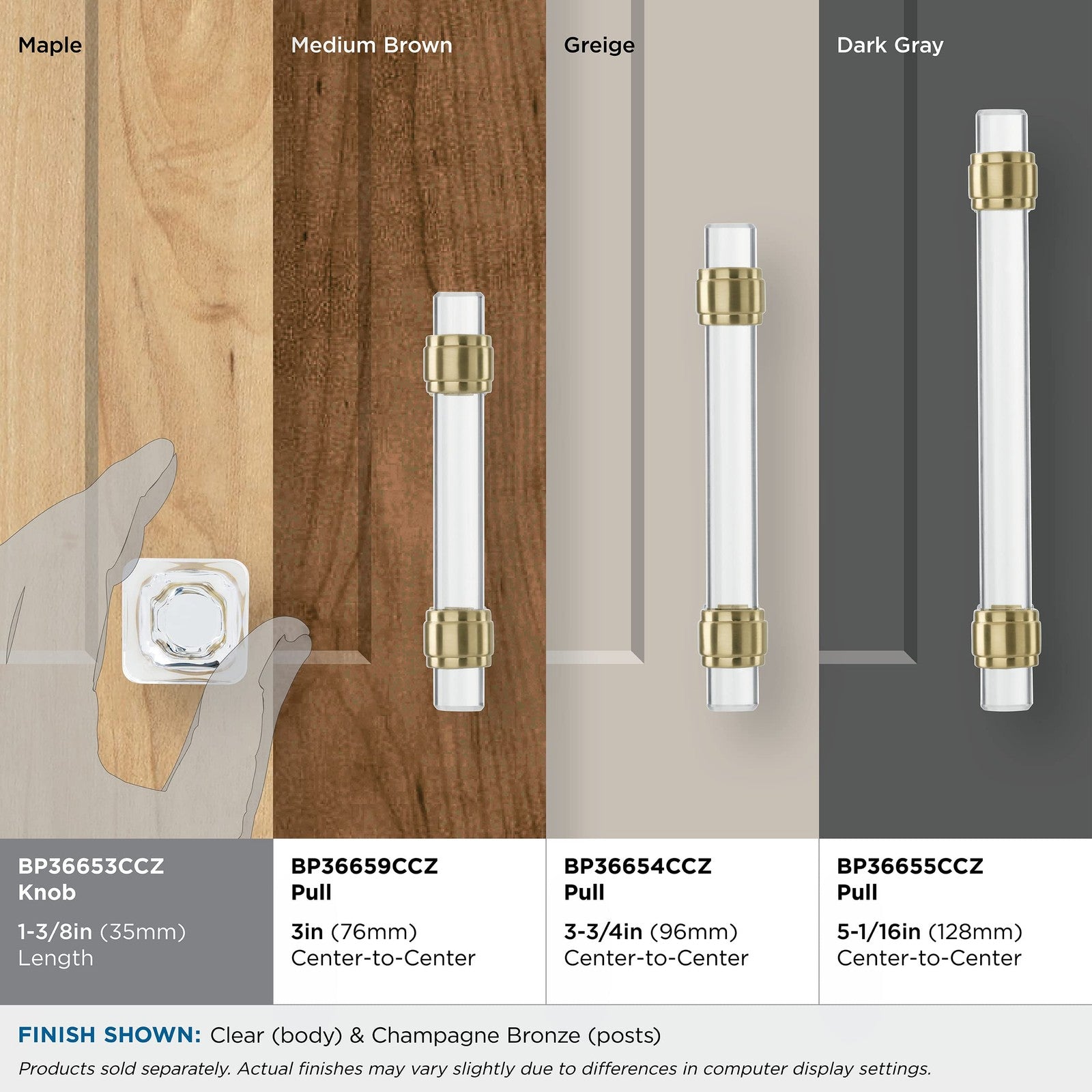 Amerock BP36653CCZ Glacio Cabinet Knob Clear/Champagne Bronze 1-3/8" Length