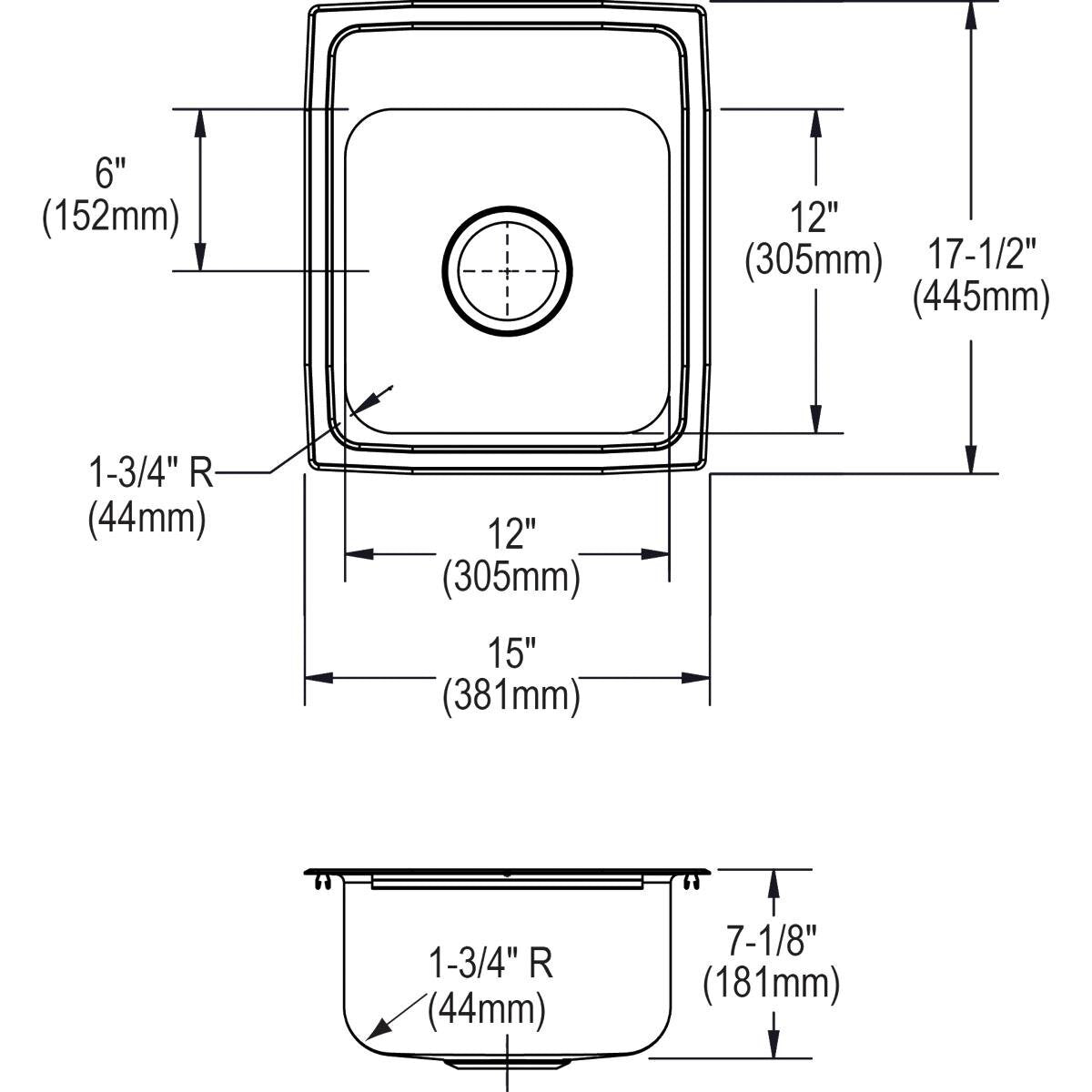 - Sink Dimensions: 15" X 17-1/2" X 7-1/8" Min. Cabinet Size: 18"