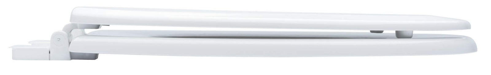 - Elongated seat with lid designed to complement a wide variety of elongated toilet designs